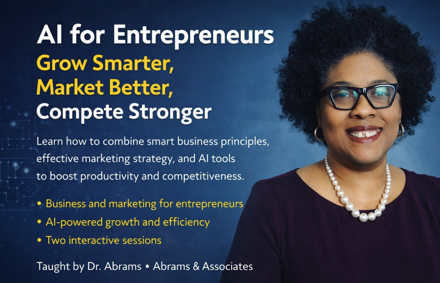 Across two powerful sessions, participants will learn how to combine sound business principles, practical marketing strategy, and AI tools to work smarter and grow faster. The course will help entrepreneurs better understand their customers, clarify what makes their business valuable, create more effective promotions, improve communication, generate fresh ideas, and make better decisions with less wasted time and effort.